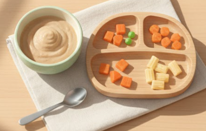 돌 전후 아기는 모유·분유 의존에서 벗어나며 식사량이 조금씩 증가합니다. 일반적으로 하루 세 끼와 간식을 시작할 수 있는 시기로, 총 열량을 고려해 식사 구성을 합니다.
